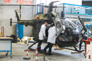 – un hall spécifique aéronautique de 3 000 m² abritant 6 aéronefs (3 avions, 3 hélicoptères), des simulateurs de maintenance, training room, moteurs, rotors, salles de cours interconnectées.