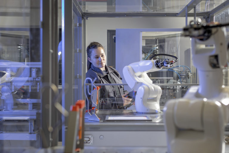 – un atelier de production 4.0 qui propose un exemple d’usine du futur via des matériels connectés, robots, cobots et des lignes de production « nouvelle génération ».